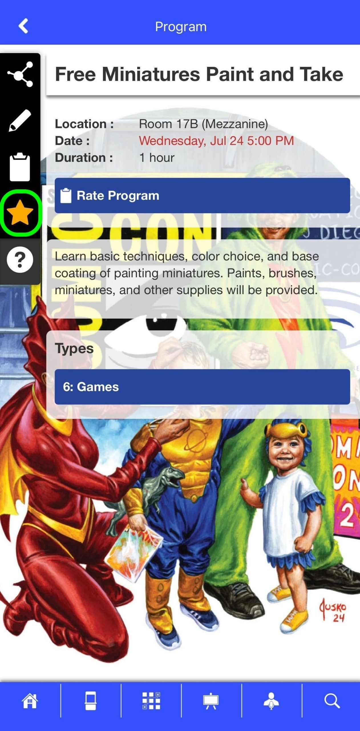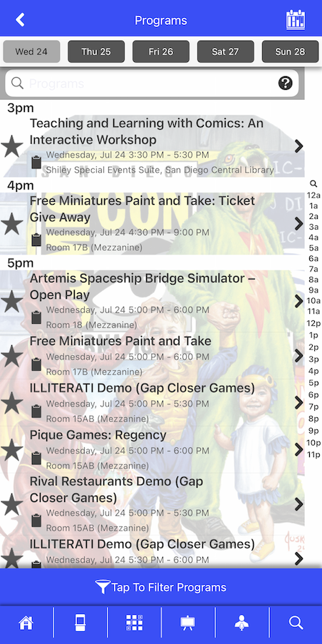- When you find an Event that you want to add to your Schedule, tap the gray star to the left of the Event to add it to your My Schedule calendar. The star will toggle to gold once added.