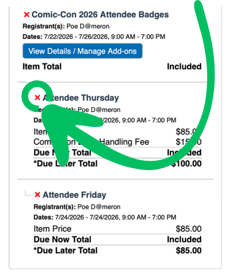 After you’ve added badges for someone to your cart, you’ll be able to modify their badge selections directly in the cart.