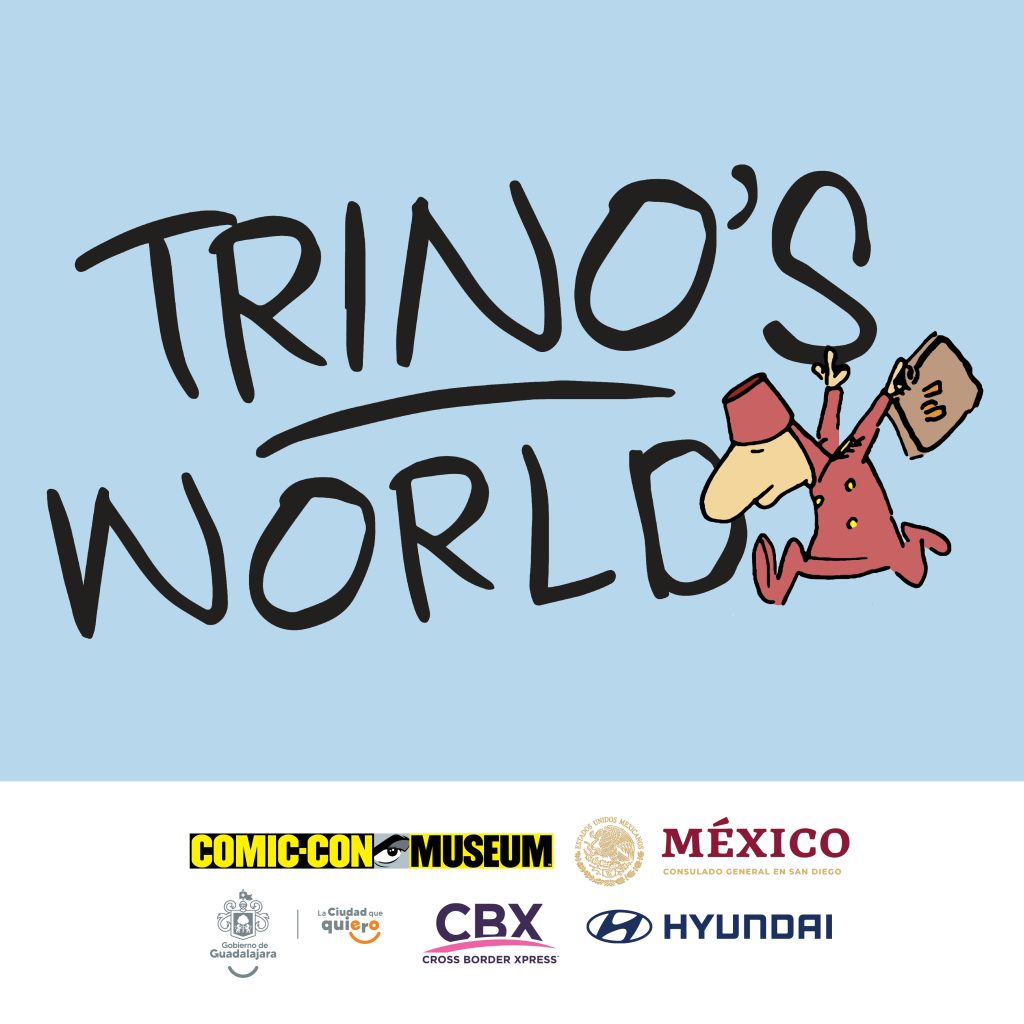 ‘Trino’s World’ features art, watercolors and objects from world-famous Mexican cartoonist Trino! Our latest exhibit in collaboration with the Consulate General of Mexico in San Diego. Our first binational exhibit.