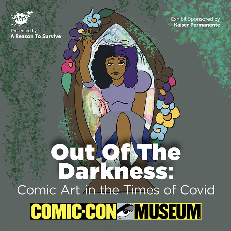 Out of the Darkness: Comic Art in the Times of COVID is a unique exhibition presented by A Reason To Survive (ARTS) and sponsored by Kaiser Permanente. The exhibit features youth artwork that comes out of a collaboration between Comic-Con Museum and ARTS, a creative youth development nonprofit serving young people across the South County region of San Diego.This collaboration rolled out with comic art and design classes at ARTS — during the height of the pandemic — and through Spring 2021, culminating in a curatorial workshop series to prepare the exhibition before you.