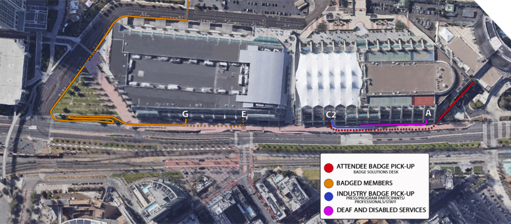 COMING ON TUESDAY? There will be limited access to the San Diego Convention Center during early badge pick-up on Tuesday, July 22. Please be careful as the front walkway and drive will have a high volume of set-up traffic. There is no programming on Tuesday, and the Exhibit Hall is closed.